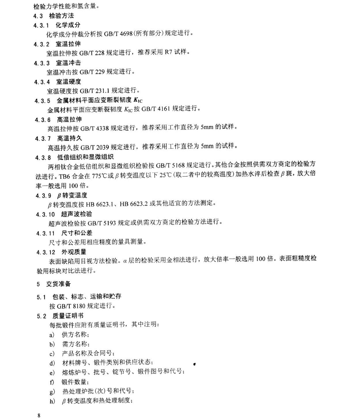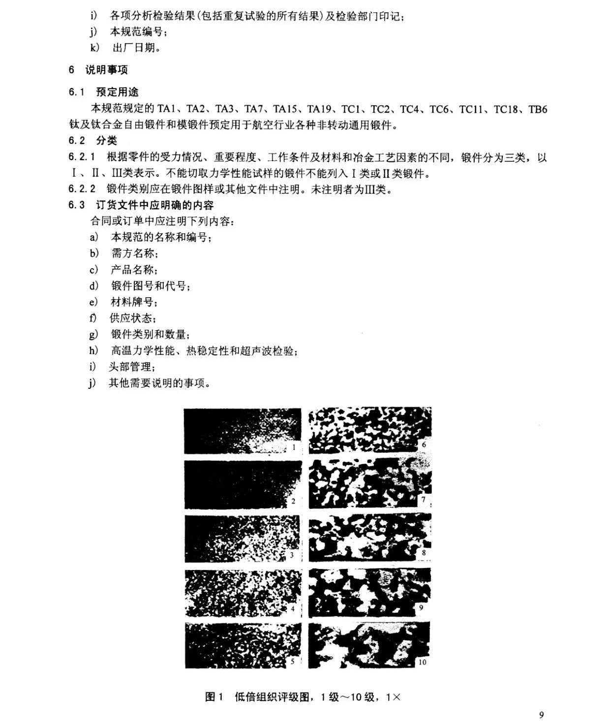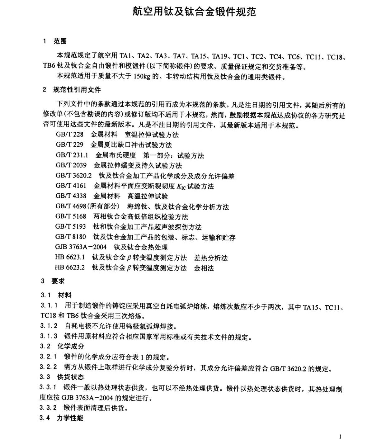 本規范規定了航空用TA1、TA2、TA3、TA7、TA15、TA19、TC1、TC2、TC4、TC6、TC11、TC18、TB6鈦及鈦合金自由鍛件和模鍛件(以下簡稱鍛件)的要求、質量保證規定和交貨準備等。