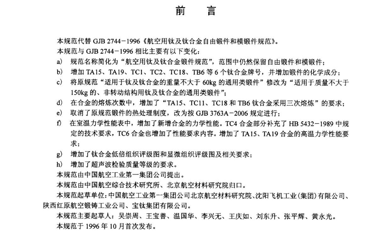 航空用鈦及鈦合金鍛件規范GJB 2744A-2007
